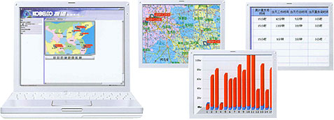 客戶通過利用互聯網,在辦公室里就能夠準確掌握機器的運轉信息。同時利用GPS捕捉機器的工作位置。可以在25萬分之一的地圖上顯示其現在位置、工作地點履歷、全機位置等最新情況。