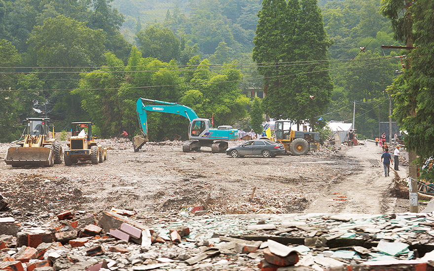 蔣:在中國,一旦出現(xiàn)有危險的災區(qū),首先部隊首當其沖。因此,當?shù)匕傩找豢吹讲筷牭能娙?,就知道來救他們來了。其次是挖掘機。一位災民說,“看到挖掘機就放心了”,我們聽到很高興。修路建房,可以“令人歡欣雀躍”,除此之外,挖掘機還能讓人們感到“放心”,我們甚是感動。再次感受到了挖掘機存在的意義。